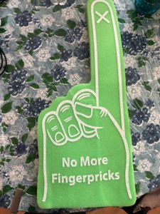 いや、野球やアメフトの応援でよく見るFoam Fingerと、血糖値測定の形が似ていることに気づき、かなり盛り上がって作ったのだと思うけど、使い道が思い浮かびません。とりあえず、来年、野球場に持ってくか(笑)