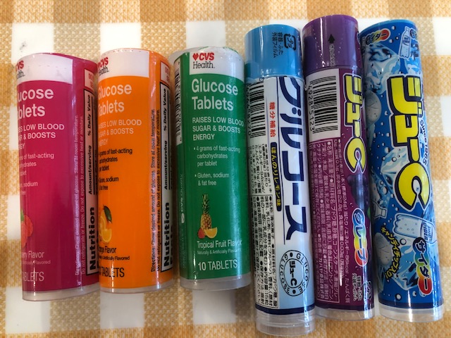 となります。従い、血糖値が下がりそう、くらいの時には、「ジューCグルコース」、本格的に下がったら、「Glucose Tablets」という使い分けをしてます。