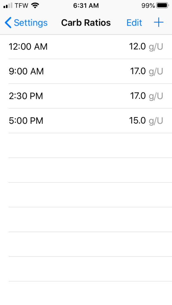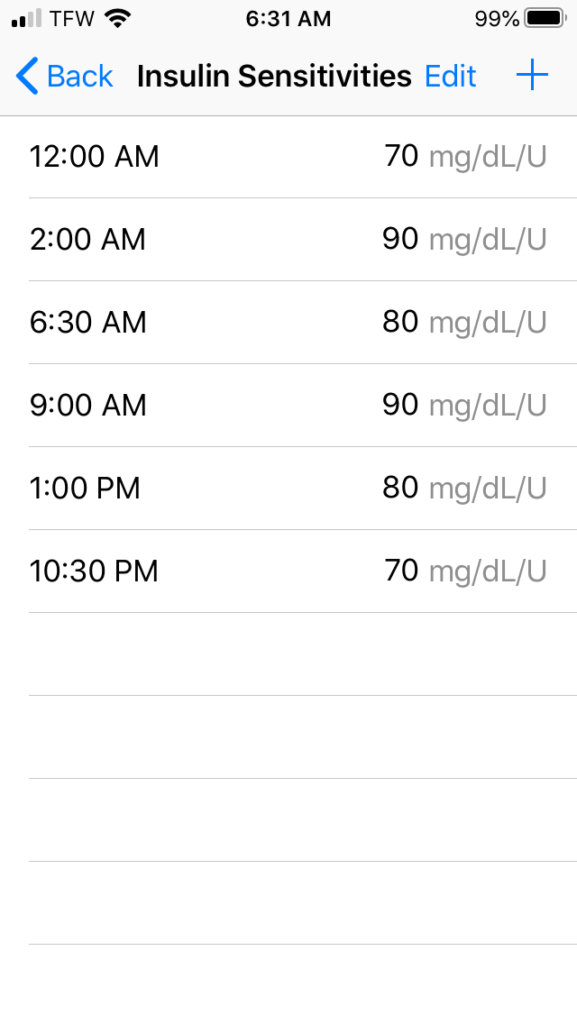 こちらはインスリン効果値。時間帯によって傾向が違うので、微調整。